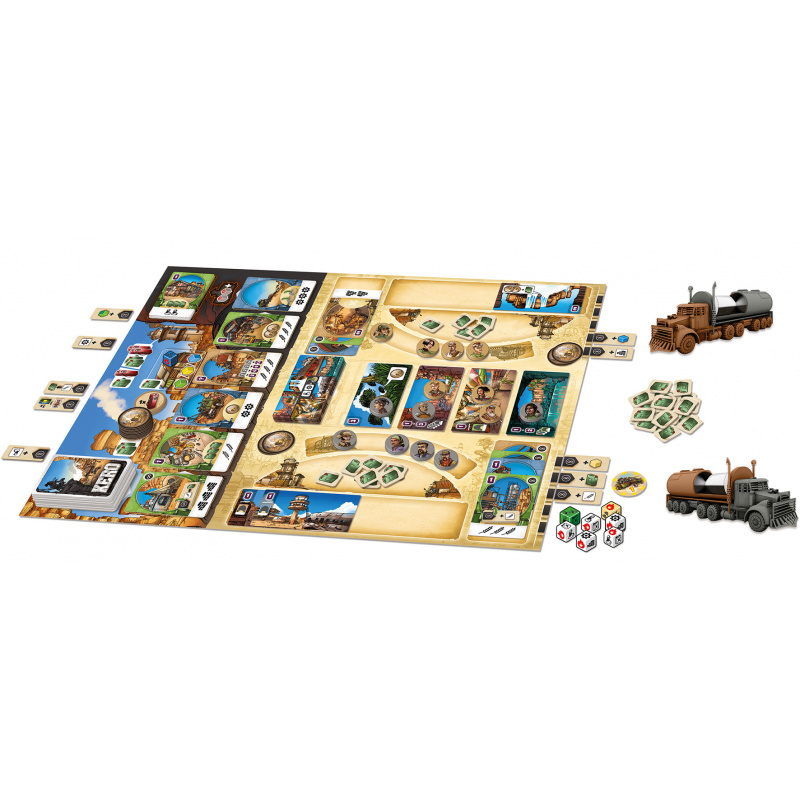 En optimisant vos cartes et en tentant de maîtriser le hasard des dés, vous devrez vous assurer la maîtrise des territoires avant votre adversaire. Soyez plus malin, plus retors et surtout plus RAPIDE que lui, car vous devrez faire des choix judicieux et lancer vos dés dans un temps limité, pendant que le sablier de votre camion-citerne se vide inexorablement !