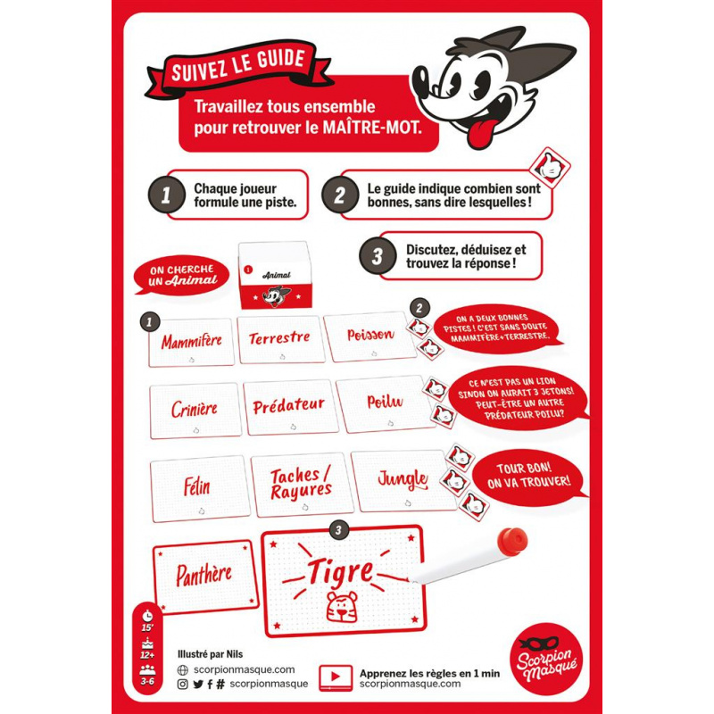 Une équipe de chercheurs formule chaque manche une série de pistes pour trouver la nature du maître-mot. Le guide, qui connaît la réponse, peut uniquement indiquer combien sont bonnes, sans dire lesquelles !